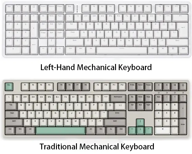 A left-handed keyboard places the numeric keypad and navigation keys on the left side, allowing the right hand to remain on the mouse for smoother and more efficient operation.
